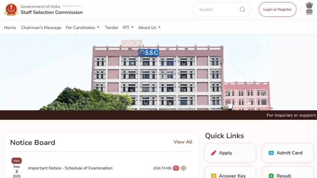 - ऑफिशियल वेबसाइट ssc.gov.in पर जाएं।